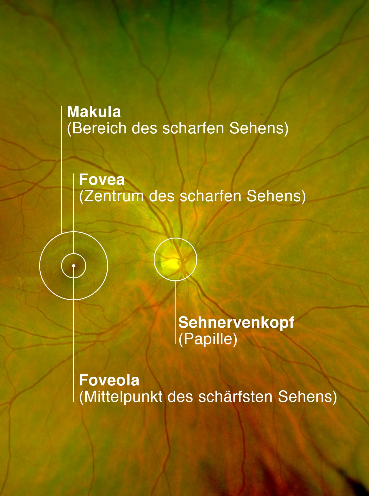 Weitwinklige Übersicht über die Netzhaut (Ausschnitt)