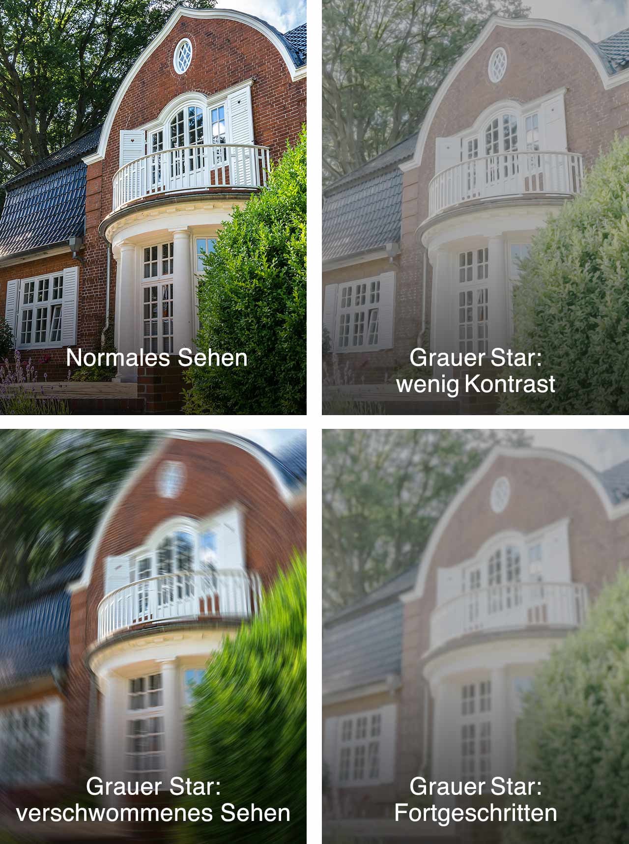 Wir haben Ihnen Grafiken erstellt, die den schwächer werdenden Seheindruck des Grauen Stars simulieren.